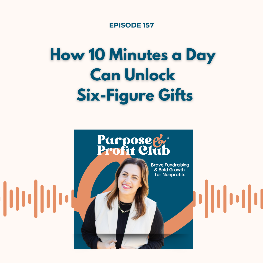 She said, I really didn't want to do it. I was putting it off Christina, I really didn't want to do it. And she did Same, same thing. She was like, but you know what? I did it, and I knew we had this call. I'm gonna do it. She made about four calls that day. One turned into one of the warmest, high impact intro meetings that you would ever want. Okay, this call with this donor that is engaged ended up saying, let me introduce you into to somebody who has the capacity for a six figure gift. Let me introduce you. Let me make this happen. There is a conversation happening because she decided to take 10 minutes and have a phone call with a donor. That's it. That's the action. She stopped avoiding it and gave it 10 minutes. That 10 minutes can turn into six figures. So when you say, I don't have time to call a donor, I don't know what to say. I want you to think about these two instances. The first one was a newer Ed. She had all the reasons not to, and look how connective it was. Look how it's helped pave the way for her nonprofit's future. The second one was a more seasoned executive director. Well, listen, she's got 1000 things on her plate, which is a million reasons why she doesn't have time to make these calls, and yet, had she done those other 1000 things, she would have missed out on a six figure gift. You have 10 minutes, you have 10 minutes, but the 10 minutes requires courage, and the 10 minutes requires you to stop negotiating with yourself and just go you with me.